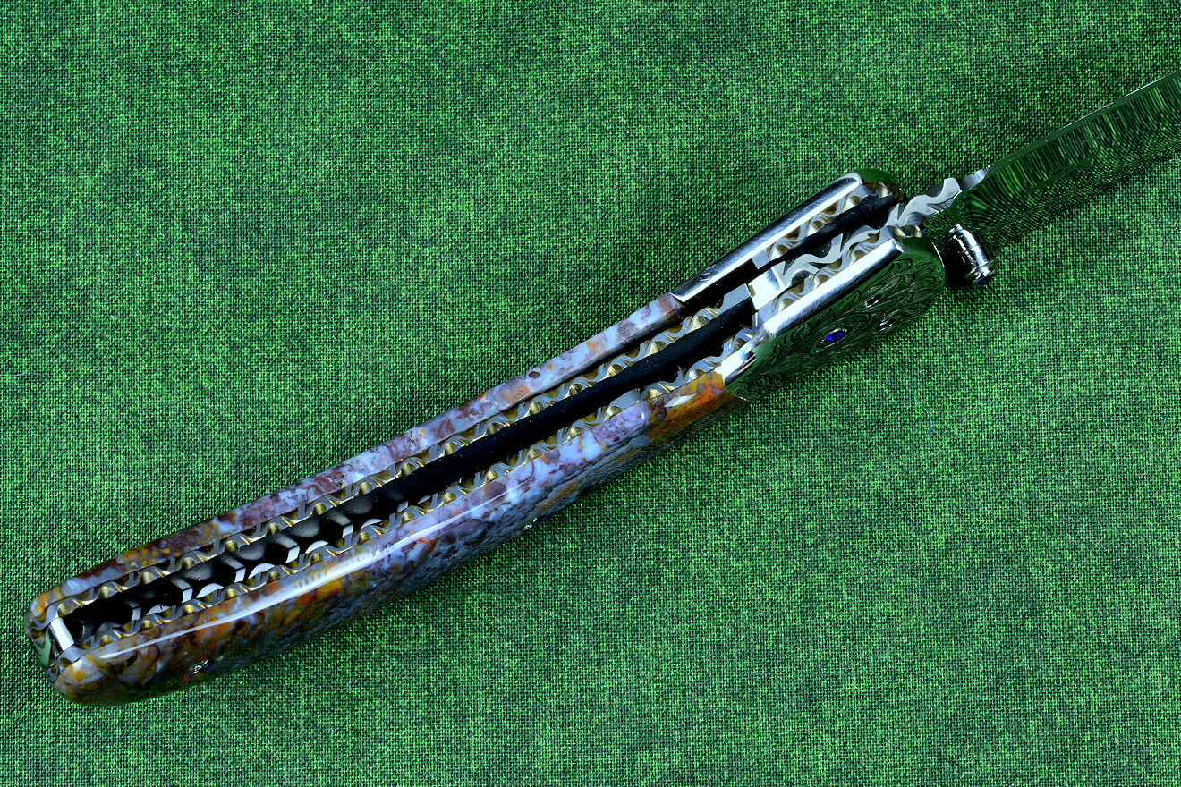 - In nature's most eternal and durable material, stone, the handle scales of this knife are