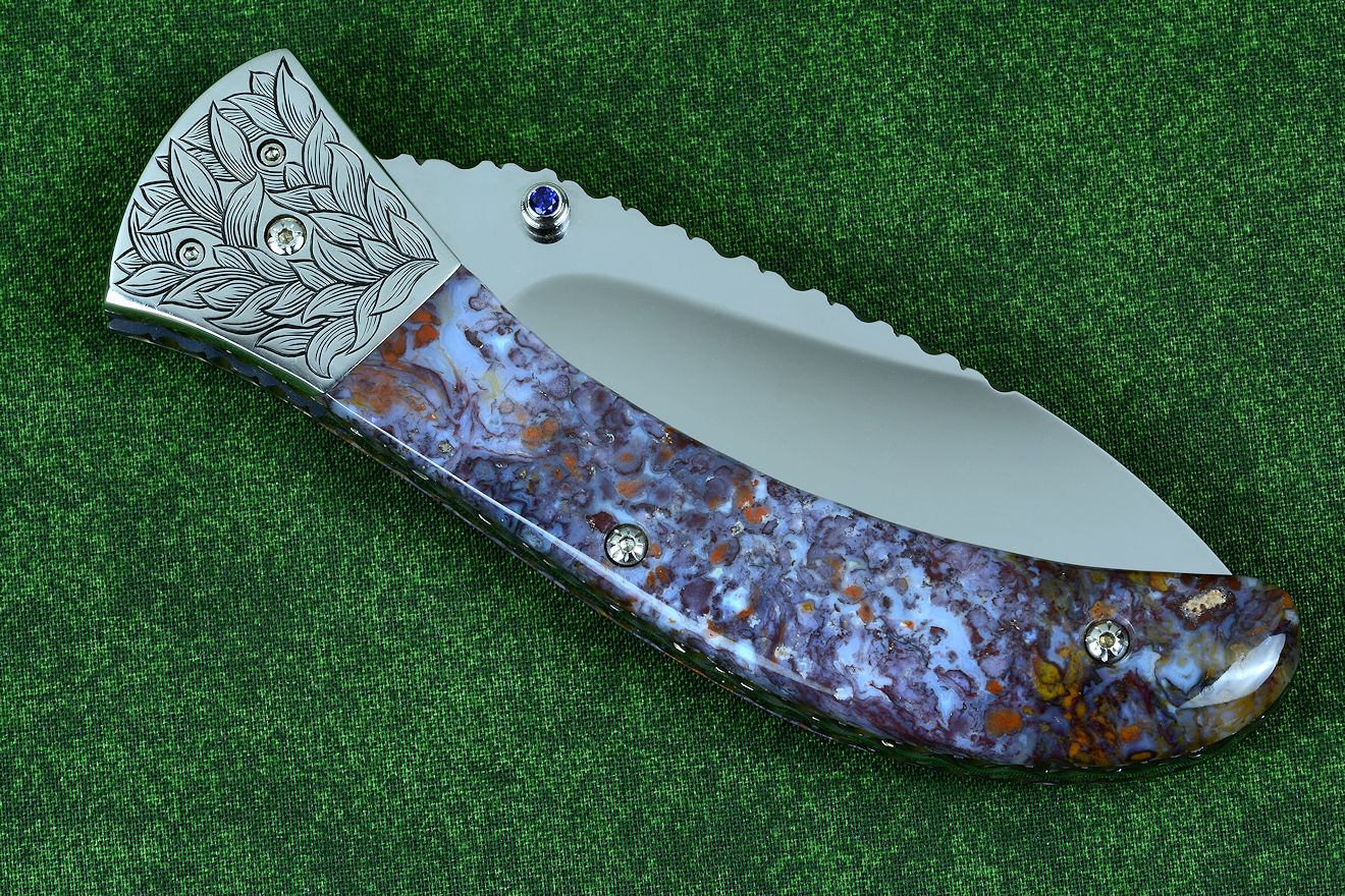 faceted blue amethyst gemstones. I put thumb studs on both sides of the blade